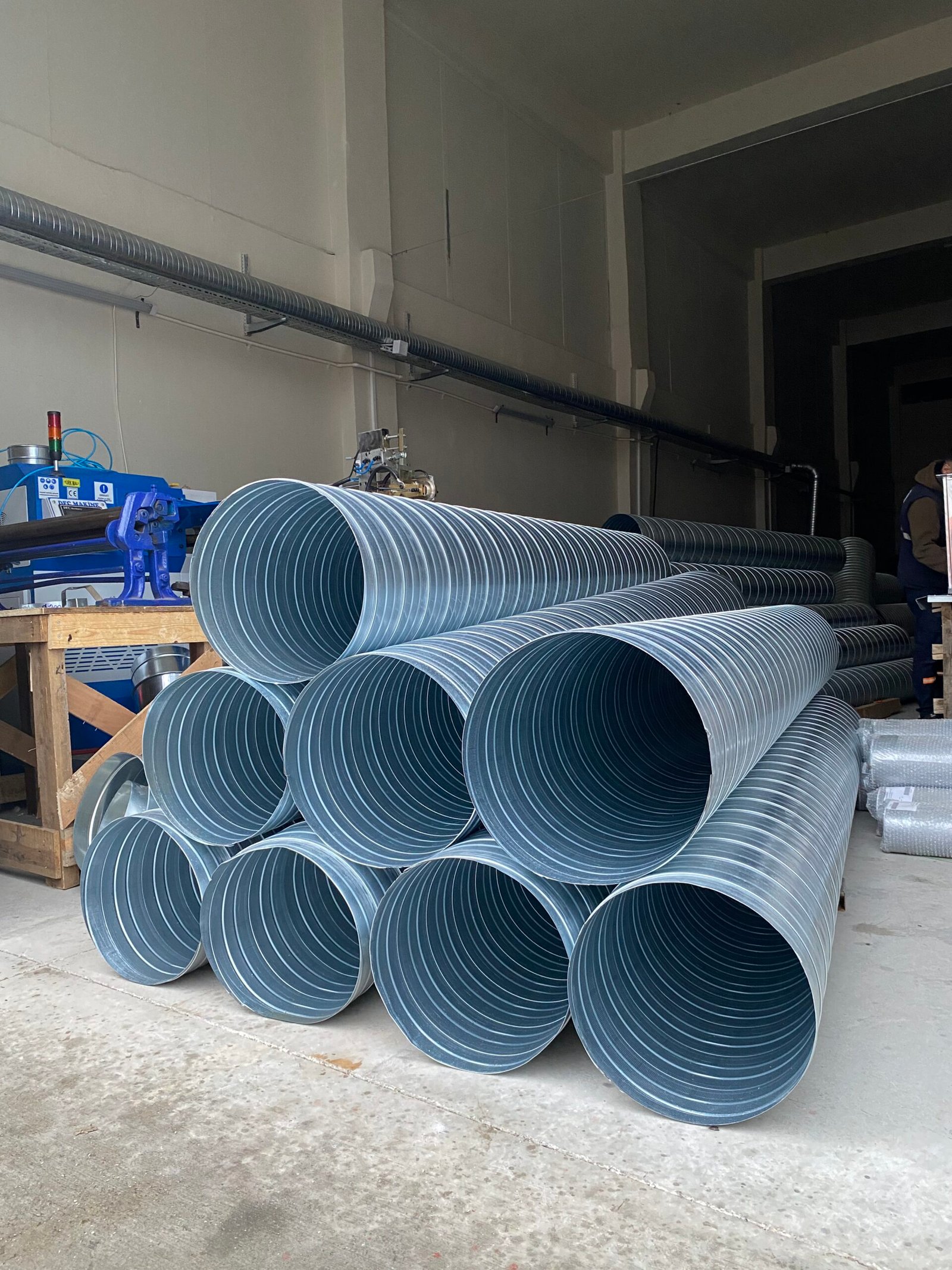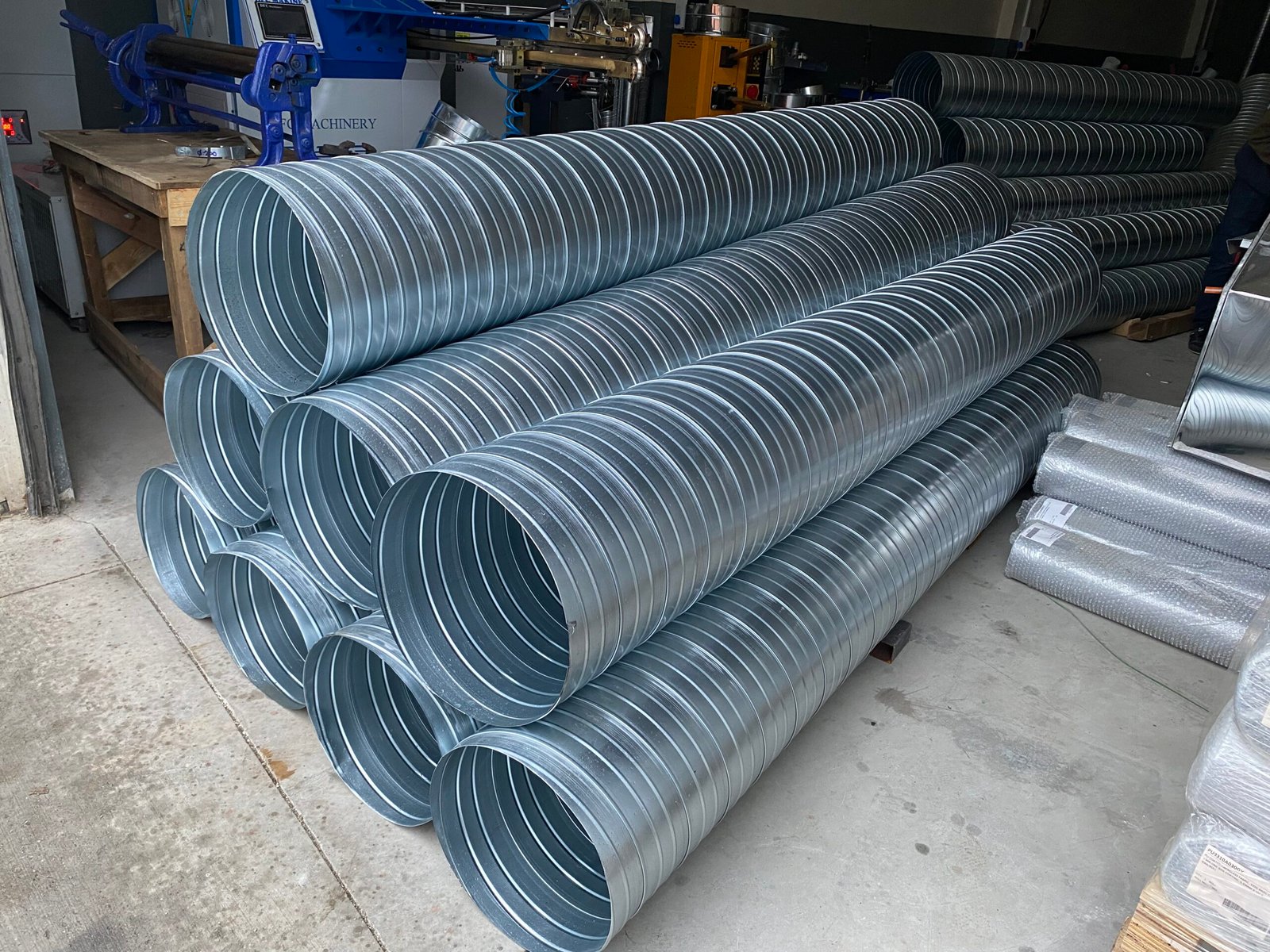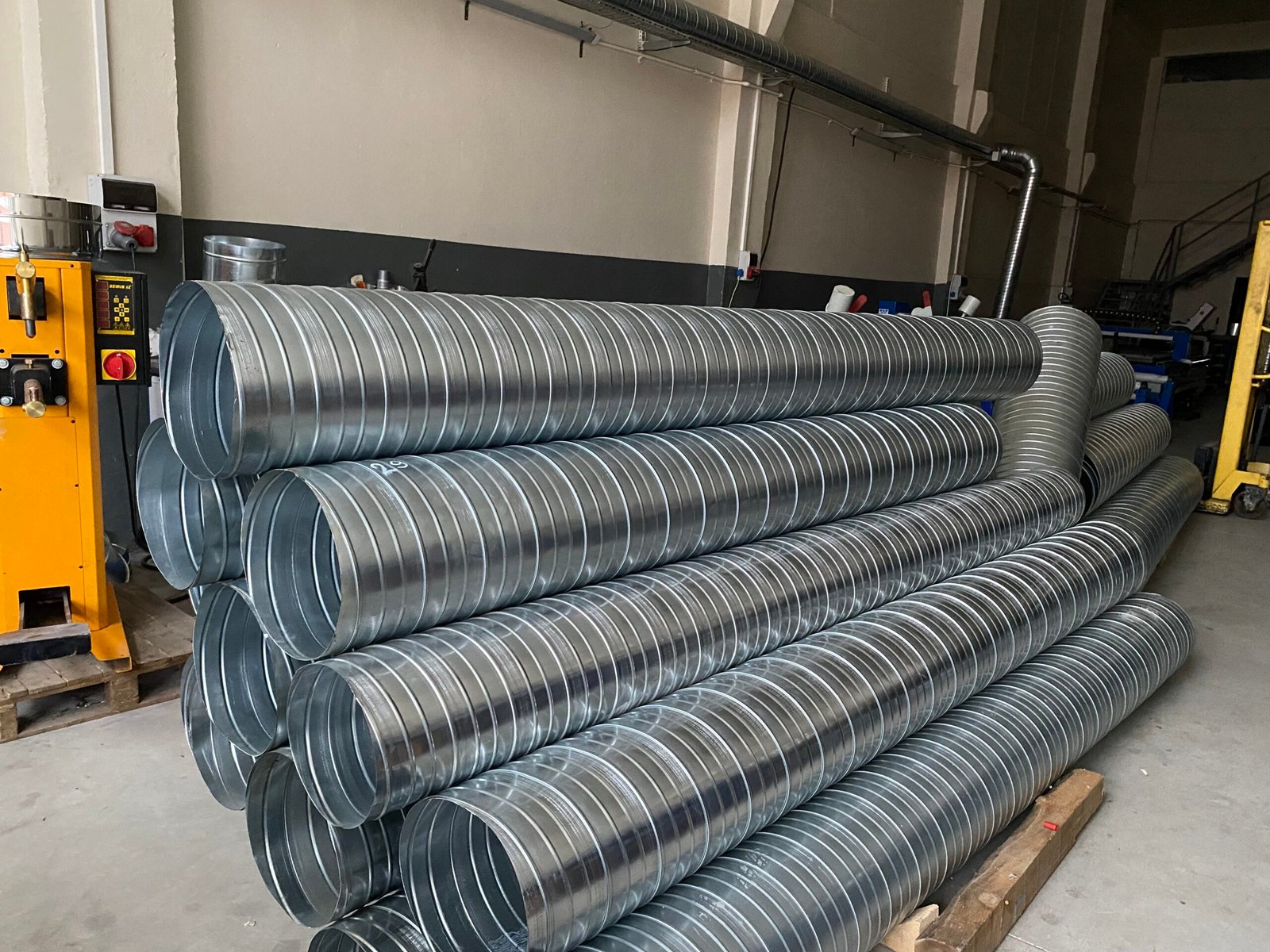 Spiral kanalların üretiminde en önemli aşamalardan biri doğru malzeme seçimi ve hazırlığıdır. Genellikle galvanizli çelik saclar (DX51D+Z Z275 gibi) kullanılır. Sac rulolar uygun ölçülerde kesilir, yüzey temizliği yapılır ve üretime hazır hale getirilir. Bu aşama, kanalın dayanıklılığı ve uzun ömürlü olması için kritik öneme sahiptir.